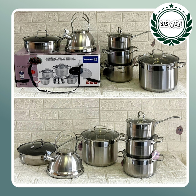 سرویس قابلمه استیل ۱۲ پارچه برند کرکماز کتری دار مدلA1827